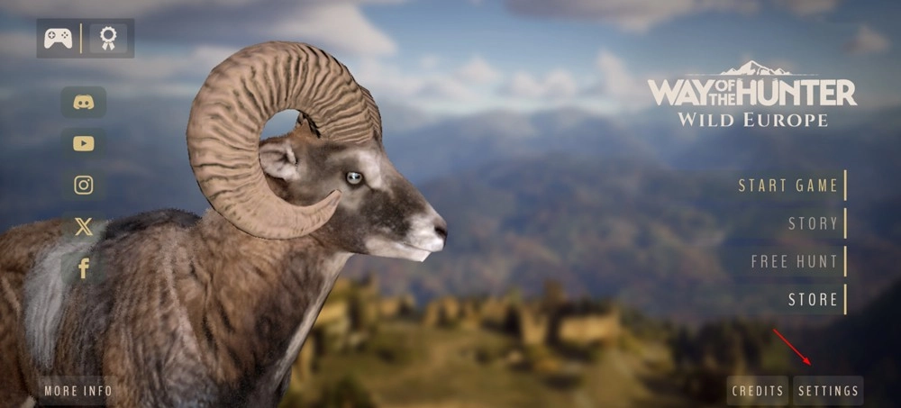 1、进入《猎人之路:狂野欧洲》后,点击右下角的“settings”按钮;