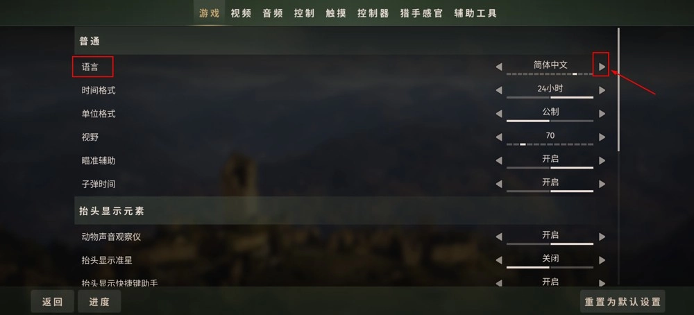 2、接下来找到language选项,点击箭头将语言切换成简体中文就可以了。