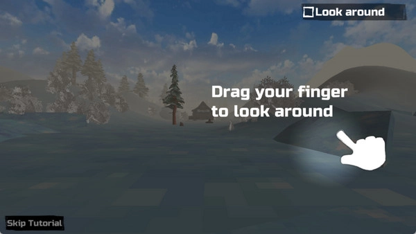 2、上岸以后,开始教程,滑动右边屏幕可以转动视角