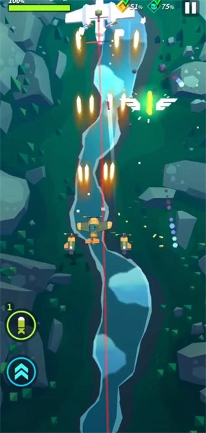 3、进入关卡后,玩家只需操控战机移动,战机会自动发射弹幕对敌人发起攻击。