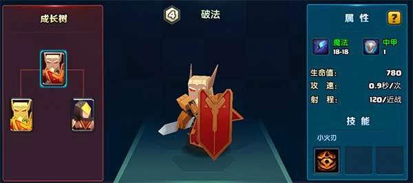 还有一点要提的是,破法者这个单位的坦度相当不错,常常能带来意外之喜。比如在中期双方势均力敌的情况下,第一波交火结束后,你的前排可能就只剩一个破法者了,但它却能扛住很长时间。这是因为破法者虽然是近战单位,攻击距离却比较远,往往能避开第一波最猛烈的伤害;而且它是中甲属性——大家要记住,中甲的特性是比较能扛后排输出,却不太抗前排伤害(这也是为什么很多三号位英雄都是中甲坦克)。所以破法者的这些特点组合起来其实很实用,很多时候值得出一个。(不过它终究算不上特别强势的兵种就是了)