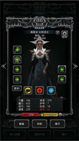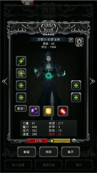 在《地下城堡2》里,法师的需求量真的特别大,到了中后期,你永远都会觉得法师不够用。先不说能不能拿到极品,光是凑够数量就够头疼的——三冰法、三火法、四血法,连巫医都得算进去。第一个抽到的SS法师,不管好坏先转成传奇用来过图;要是魔力属性特别出色,那就转火法。接下来就慢慢凑冰法、火法和血法。这里得提醒一句:别因为血法魔力比元素低就把它解雇了,血法的魔力本来就该略低于元素(欧皇玩家可以忽略这条)。巫医的话,有一个技巧属性不错的就够用了,至于其他分支,个人觉得没什么用,不是必须练的职业。