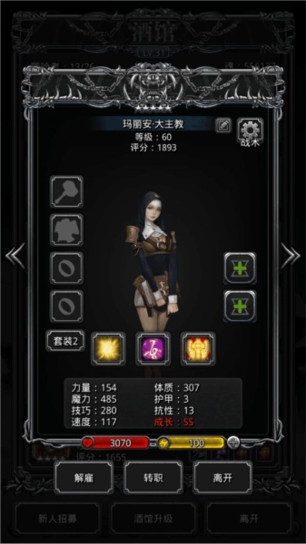 萝莉与黑丝的特性为:高魔力、高技巧,力速比容易大于1,这类角色感觉适配教宗和圣光职业。选择时建议优先关注技巧属性,之后再考量魔力;要是技巧和魔力都达到极品水准,力速比的问题便可以忽略,毕竟到了后期,几十点的速度差距不会造成太大影响。