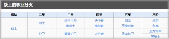战士→护卫→重装护卫→守护者→圣龙铁卫→黑骑士