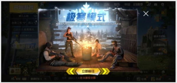 首先,极寒模式以雪地地图为基础,新增了暴风雪天气效果,呼啸的冷风与漫天飞雪能带来身临其境的雪地体验。此外,在原有血量条之外增加了体温条,当体温条处于满值状态时,角色体温维持在37℃;若遭遇暴风雪侵袭,体温降至36℃以下,血量便会迅速减少,最终导致角色死亡。
