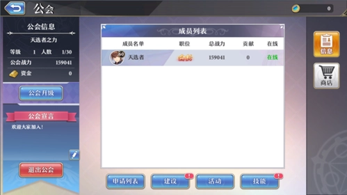 在加入或创建公会之后,每次点击公会按钮,都能够打开公会信息界面。