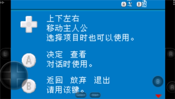 1、移动键以及A、B键,执行任务时要先靠近NPC,之后按下A键方可进行对话。