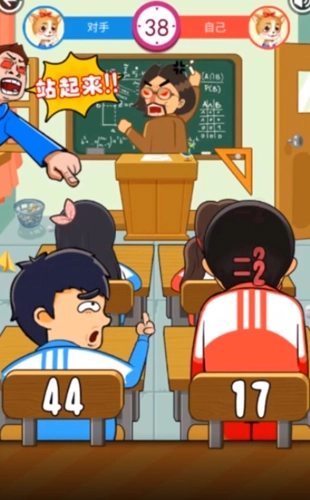 玩法很简单——就是和同桌在课堂上展开一场对战。你要扮演成学生,在老师的课堂上和同桌互相打闹,谁打闹的次数多,谁的分数就更高。不过,这里面肯定有阻碍,那就是老师和教导主任。在打闹的时候,老师和教导主任会突然看向你(这时会出现感叹号),你需要立刻停止所有动作。要是你不动,最多只是被老师批评几句;但要是你还继续动,就会被同桌嘲笑,还会被扣分。