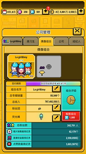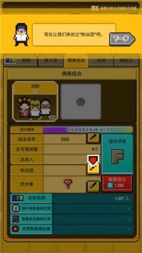 3、点击公司管理,接着把招募到的练习生组建为一个组合;