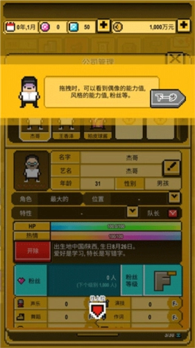 5、拖拽过程中,能够查看偶像的能力值、风格的能力值以及粉丝等信息;
