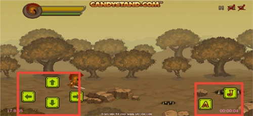 2、进入后,左侧的上下左右按钮用于操控角色移动,右侧的A键对应攻击功能,J键则负责跳跃操作。