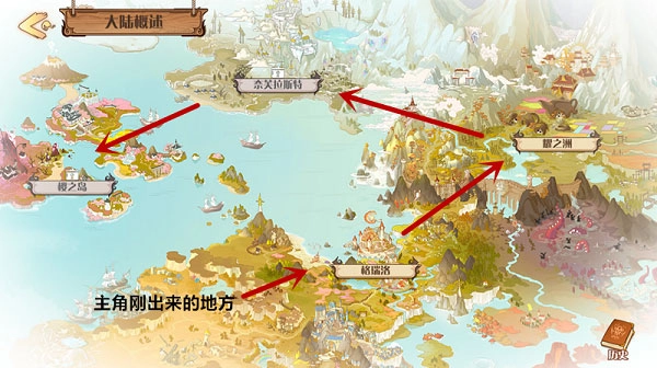 中共有4个地区,分别是格瑞洛、耀之洲、奈芙拉斯特以及樱之岛(还有两个尚未解锁的神秘大陆)。主角初始进入的区域是格瑞洛,随着等级的不断提升,后续的地区会逐步解锁开放。