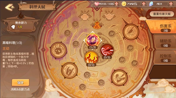 连携技会对飨灵原本的大招进行强化,同时把自动释放的大招调整为手动释放,并且额外增加一个主动技能;在同系料理天赋里,厨力点的消耗是累加计算的,因此学习天赋时一定要仔细考虑清楚~