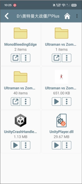 4、进入模拟器后,找到D盘里的“奥特曼大战僵尸Plus”文件夹,点击UltramanvsZombies.exe文件就能启动