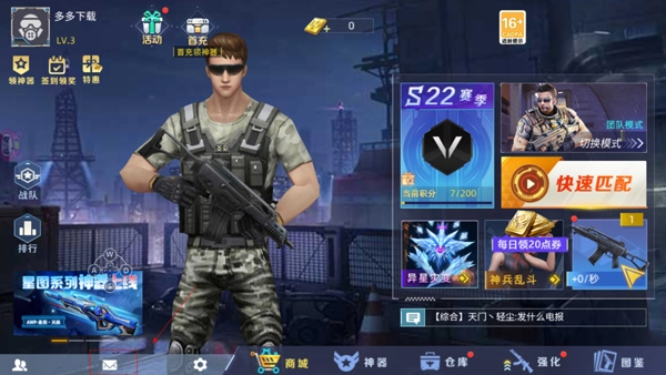 2、每天完成特定任务就能领取奖励,像每日人机对战、团队对战,以及用手雷累计消灭1人这类任务,都能获得金币。