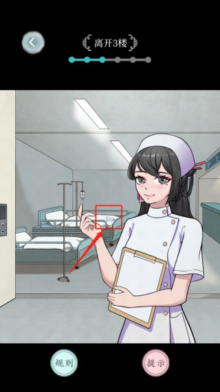 7、玩家刚才在电梯里随意按楼层,能到达3楼。那里会有一位护士与你交谈,你还会看到一张纸条,玩家依旧点击它,接着按照剧情推进就能完成任务。