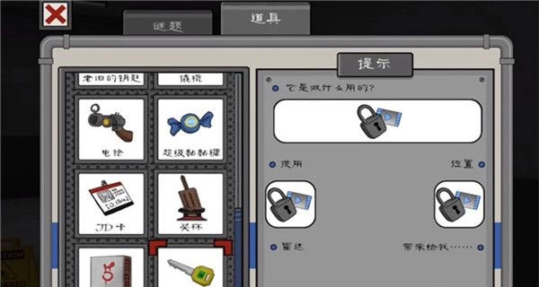 1、进入后点击道具选项,就能看到一个处于锁定状态的神秘钥匙物品。