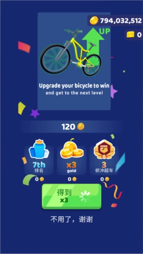 6、解锁多款炫酷自行车,还能升级属性,助力玩家驰骋赛道。