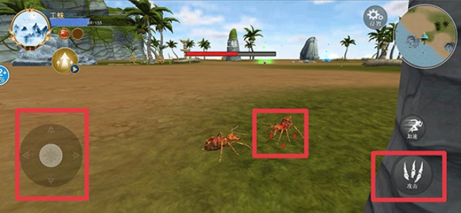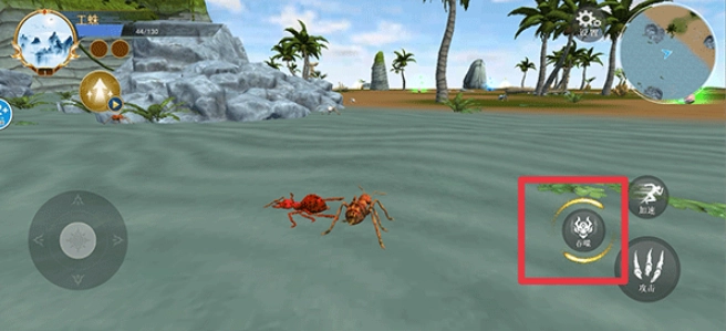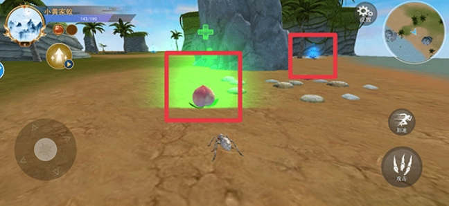 1、利用左侧的摇杆操控蜘蛛的移动,按下攻击按钮就能猎杀猎物。