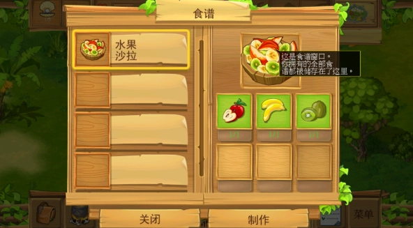 7、接下来我们要制作一份水果沙拉,待收集好所需物资并完成食物制作后,提交任务就可以了。
