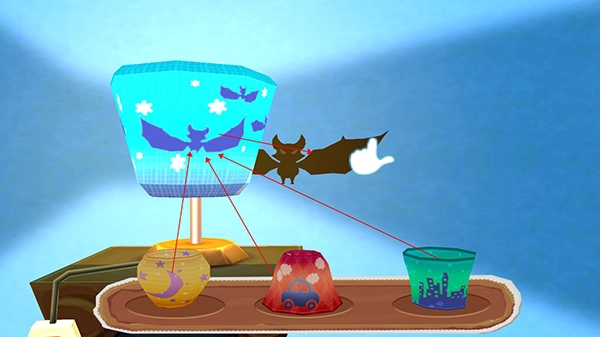 接下来就可以着手捕捉影子了,点击下方的蝙蝠台灯罩,就能捕捉到蝙蝠影子。另外还有两个不同的灯罩,点击它们的影子也会出现变化,不过不会触发捕捉功能。