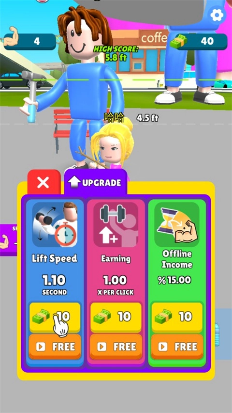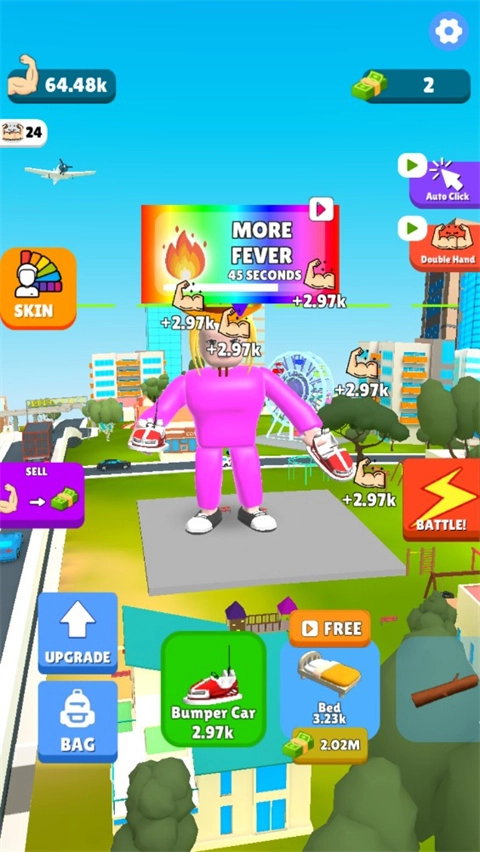 你准备好通过举重蜕变成巨人了吗?这次为大家带来的是《肌肉甜心》,它的英文名是Lifting HERO,这是一款超有趣的3D点击类游戏。玩法十分简单,只需不断点击屏幕即可——从较轻的重量起步,把练出的肌肉卖掉,用这笔钱购买新装备,从而举起更重的负荷;同时还能将力量转化为钞票,解锁哑铃、飞机、火箭、飞碟、陨石等各式各样的道具,不同道具的加成效果各异,体型越大的道具带来的加成越多。 在《肌肉甜心》里,玩家还能解锁皮肤、帽子等装饰,让角色的视觉效果更出彩。此外,游戏中设有与对手PK的环节:在倒计时结束前,只要你的体型比对手更大,就能赢得胜利,还能获得相应的奖励。感兴趣的玩家还在犹豫什么?快来体验一下吧!