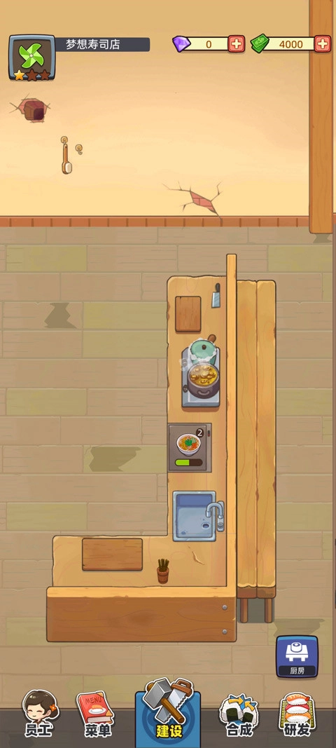 1、你意外接手了奶奶留下的一间看似有些破败的寿司店,需要仔细打扫、装修一番,让这家店重新运转起来。