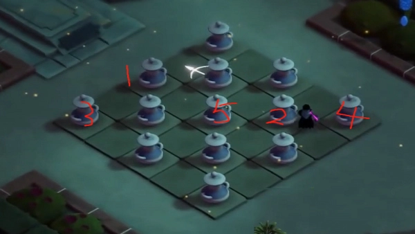 玩家可按照下图中标号的顺序攻击茶壶,唯有遵循此顺序,才能顺利解开谜题并获取最终奖励。