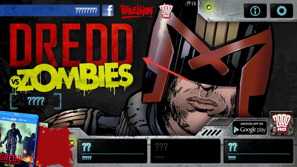 1、在进入【DREDD-VS-ZOMBIES】之前,请留意界面上的【REBELLION】和【2000-AD】标识,以此确认版本信息。