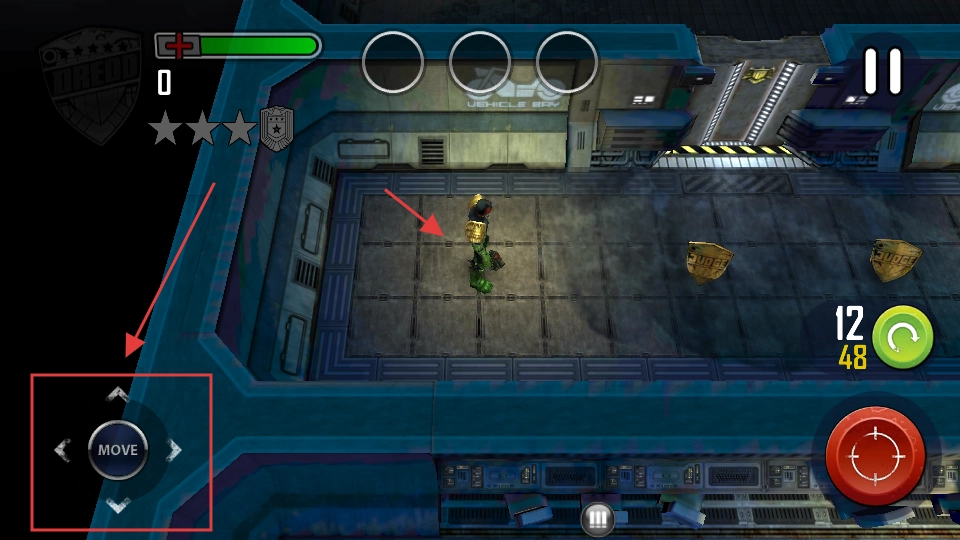 2、通过左侧的【MOVE】按钮来操控角色在网格场景中移动,朝着箭头所指的位置前进,为收集【JUSTICE-SHIELD】做好准备。