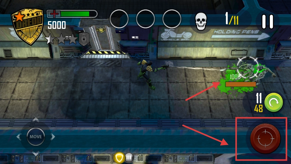 4、当僵尸出现时,点击右侧的红色攻击按钮,瞄准带有【SKULL】标识的目标,对其造成【1008】点伤害以消灭僵尸。