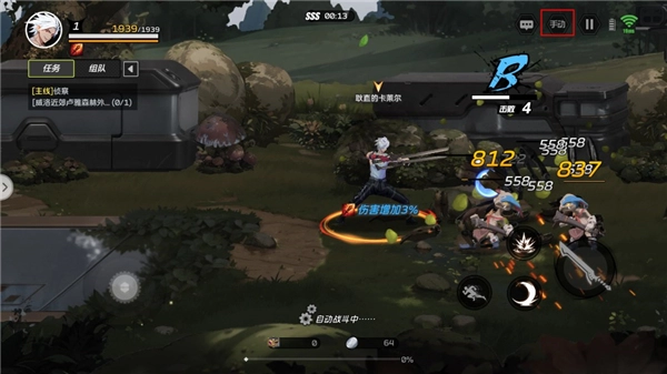 6、在界面内点击右上方的按钮即可开启自动战斗,从此可以解放双手,轻松刷取材料。