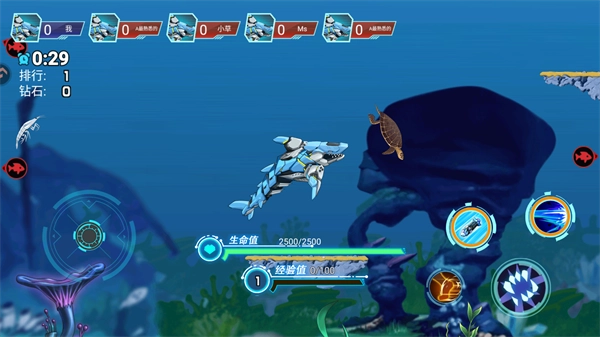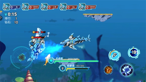 2、通过解锁与组装,让你的战鱼在海底绽放独特光彩,搭配耀眼皮肤,成为整片海底最引人注目的存在。