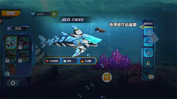 6、拖动装备武装你的鲨鱼;