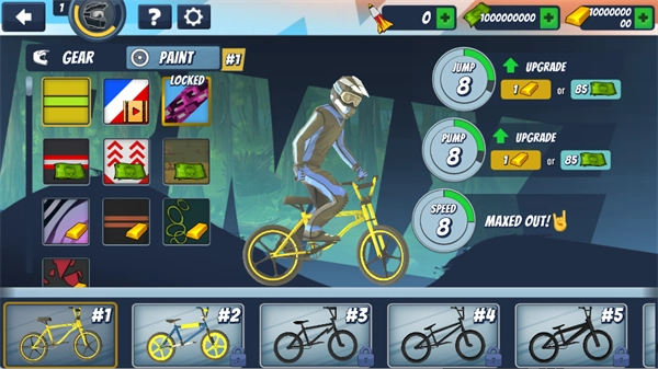 6、获得奖励后,可前往仓库对自行车进行涂装与定制,提升跳跃和泵速属性。同时,你还能解锁更多自行车,打造专属于自己的独特竞速风格。