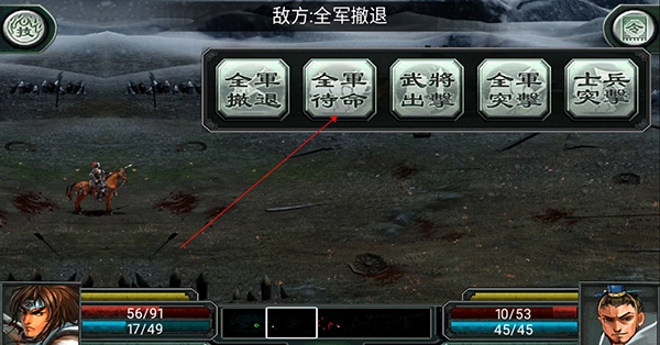 5、借助全军待命功能选择更优的战场位置,例如让我方士兵推进到武将前方,随后保持待机状态以保护我方将领。