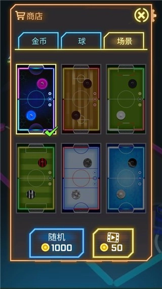 2、这里有多种皮肤可供解锁与选择,你可以把自己的冰球换成不同的颜色,这样一来,碰撞时的特效会变得更加酷炫,玩法也很有新意。