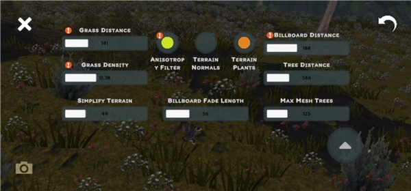 4、玩家可自由调整草地的密集度、地形、树密度等。