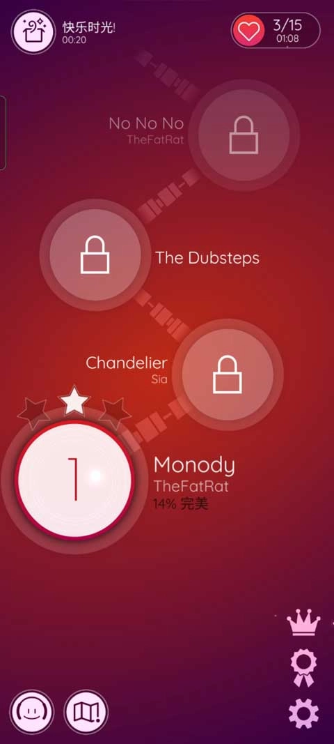 4、每首歌曲里都设置了多个检查点,能让你快速恢复进度,不过要珍惜每一次生命机会。