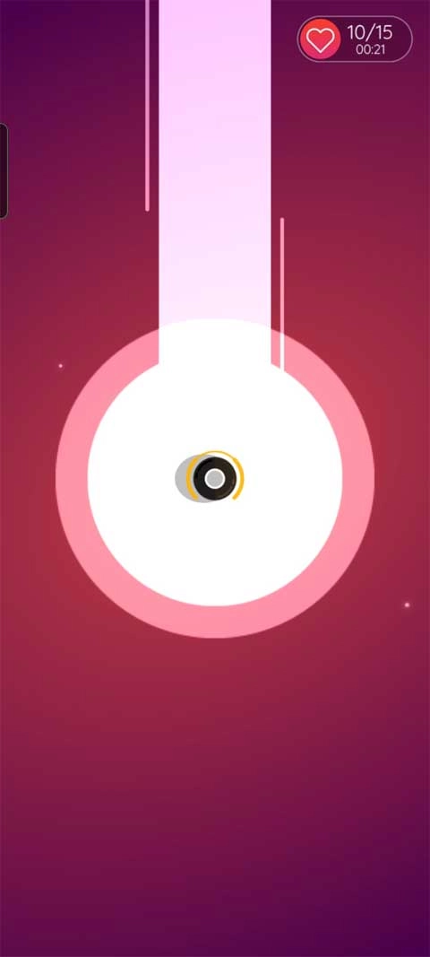 1、进入场景后,你会看到圆形轨道中心有一个小球,点击屏幕就能让它开始移动。你需要在小球靠近轨道转折点时精准点击,尤其是当它到达白色圆圈标记的位置时,这样才能顺利转向并继续前进。