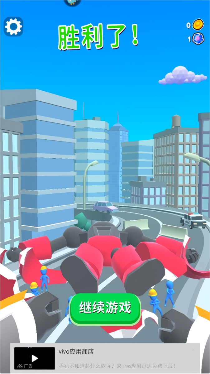 4、多次命中敌人就能将其击败,取得胜利后点击“继续”,去挑战更强大的对手。