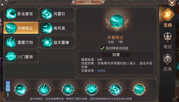 技能效果:召唤风雷法阵,对场上多个目标造成多段伤害