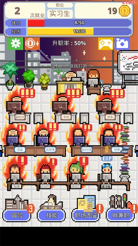 要想爬到更高的职位,就得不断往上爬,然后被辞退,接着再爬上去,顺便刷一刷升职率(不过对运气差的人来说,这东西也没多大用)