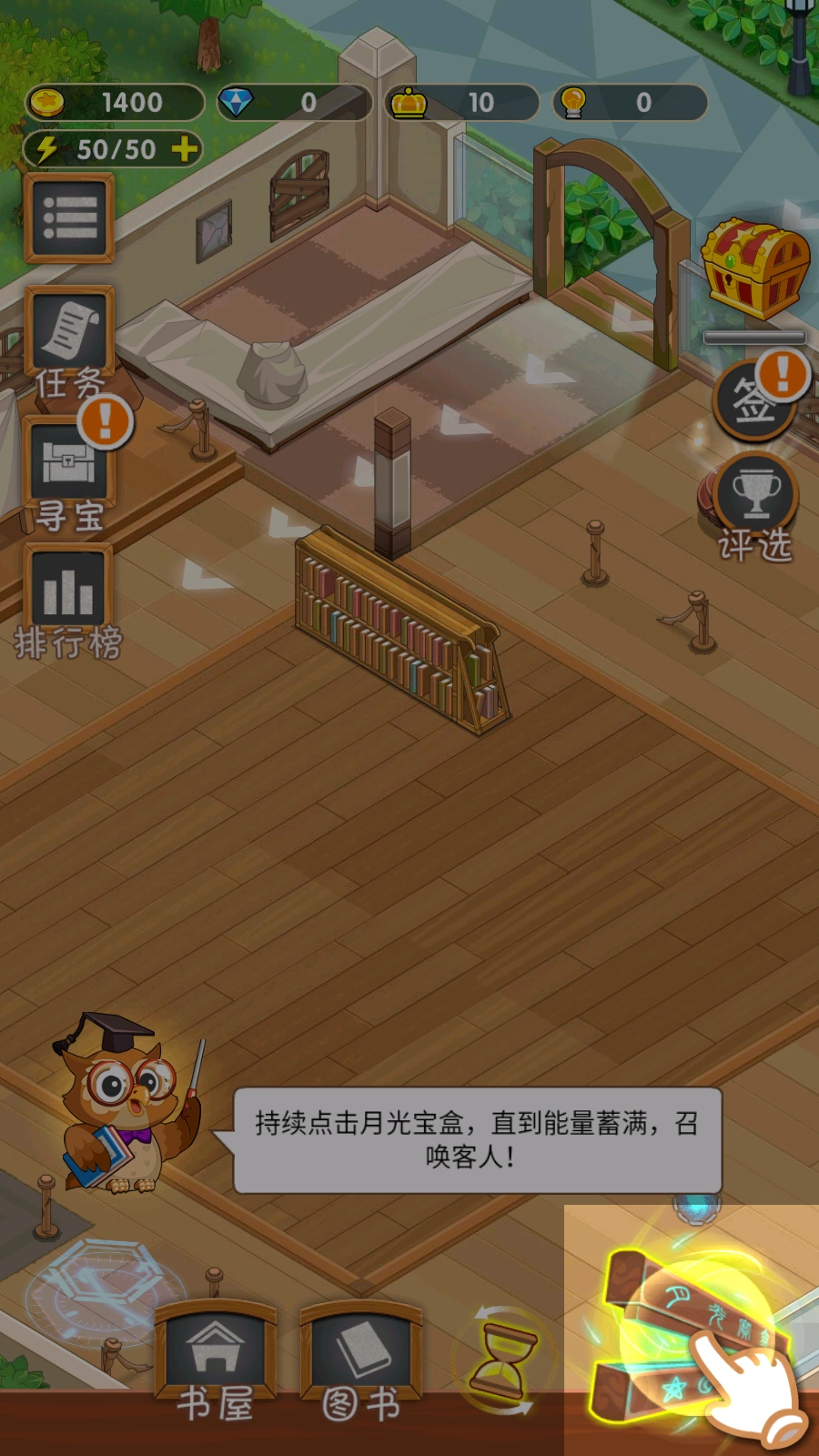 5、有时玩家不想等待客人自动上门,可通过持续点击月光宝盒蓄满能量,以此召唤客人。