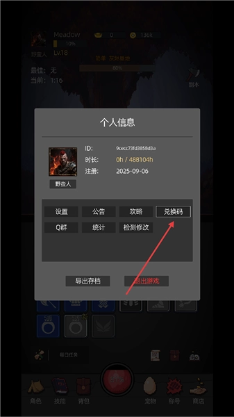 3、进入后先点击角色头像,打开“兑换码”功能,选择“一键补领”,就能领取所有开局奖励。