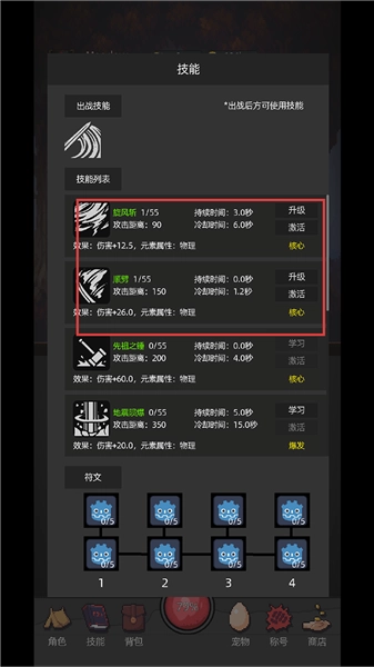 5、当角色达到2级后,解锁并激活【旋风斩】技能。