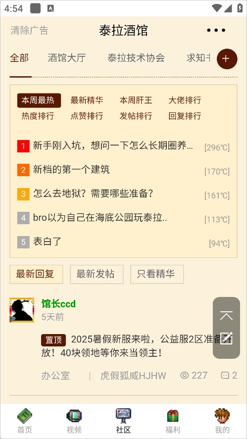 社区互动体验升级啦!我们优化了社区板块,现在分享攻略、提问和交流玩家心得都更方便啦。而且还新增了实时通知功能,让你能第一时间参与到泰拉瑞亚玩家的讨论中!