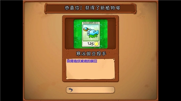4、比如在这个场景中,我们得到的是寒冰豌豆投手,而不是像常规冒险模式那样获取植物。