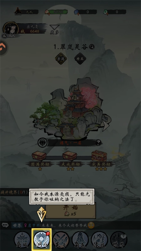 2、进行第一步操作时,我们得先点击洞府,学习吐纳之法。