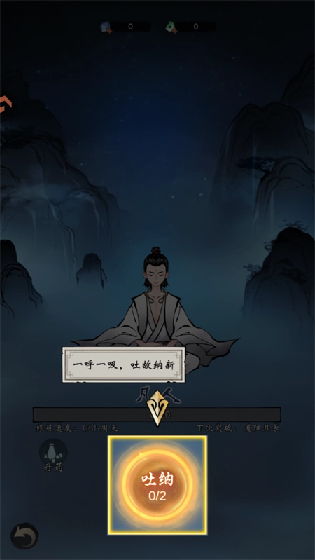 4、点击吐纳按钮,我们就能够吸取天地灵气了。